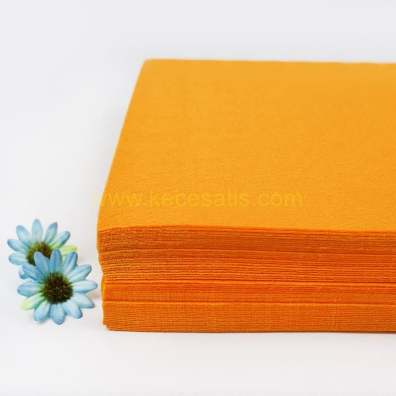 1mm Parlak Turuncu Renk Keçe; 1mm kalınlığında, Parlak Turuncu renkli, ince sentetik keçe satışı. Ürün doğal, kullanım şartlarına uyulduğu sürece renk ve doku özelliklerini korur. 30×30 boyutunda